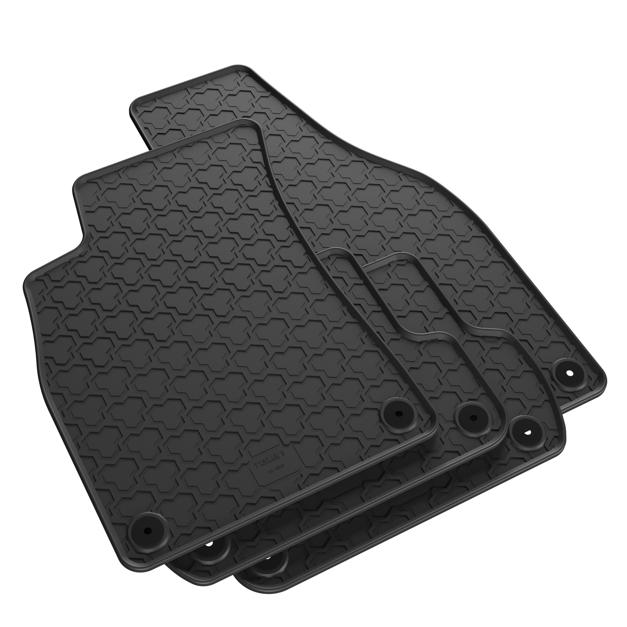 Dywaniki gumowe marki TEXER stanowią uniwersalną ochronę wykładziny nadwozia bez względu na porę roku oraz warunki pogodowe. Starannie opracowana mieszanka gumowa zapewnia optymalny poziom elastyczności oraz twardości produktu, zapobiegając tym samym powstawaniu pęknięć jak również ścieraniu się górnej warstwy podczas mechanicznego użytkowania. Wysoka odporność na działanie promieni UV chroni gumową wykładzinę przed blaknięciem. Na trwałość umożliwiającą długoletnie i satysfakcjonujące użytkowanie produktu nie pozostaje bez wpływu również oryginalna struktura tłoczeń umożliwiająca łatwe i szybkie czyszczenie a także zwiększona grubość gumy w miejscu pod stopami kierowcy.