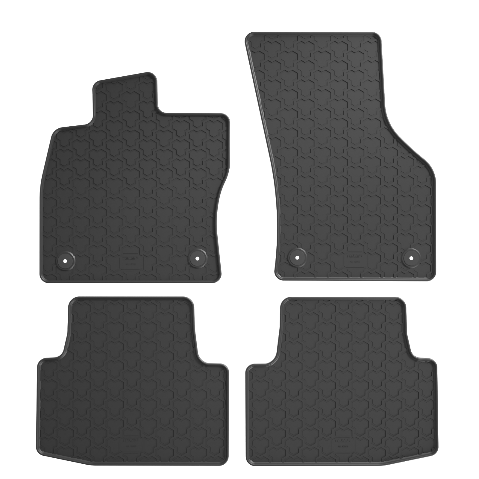 Dywaniki gumowe marki TEXER stanowią uniwersalną ochronę wykładziny nadwozia bez względu na porę roku oraz warunki pogodowe. Starannie opracowana mieszanka gumowa zapewnia optymalny poziom elastyczności oraz twardości produktu, zapobiegając tym samym powstawaniu pęknięć jak również ścieraniu się górnej warstwy podczas mechanicznego użytkowania. Wysoka odporność na działanie promieni UV chroni gumową wykładzinę przed blaknięciem. Na trwałość umożliwiającą długoletnie i satysfakcjonujące użytkowanie produktu nie pozostaje bez wpływu również oryginalna struktura tłoczeń umożliwiająca łatwe i szybkie czyszczenie a także zwiększona grubość gumy w miejscu pod stopami kierowcy.