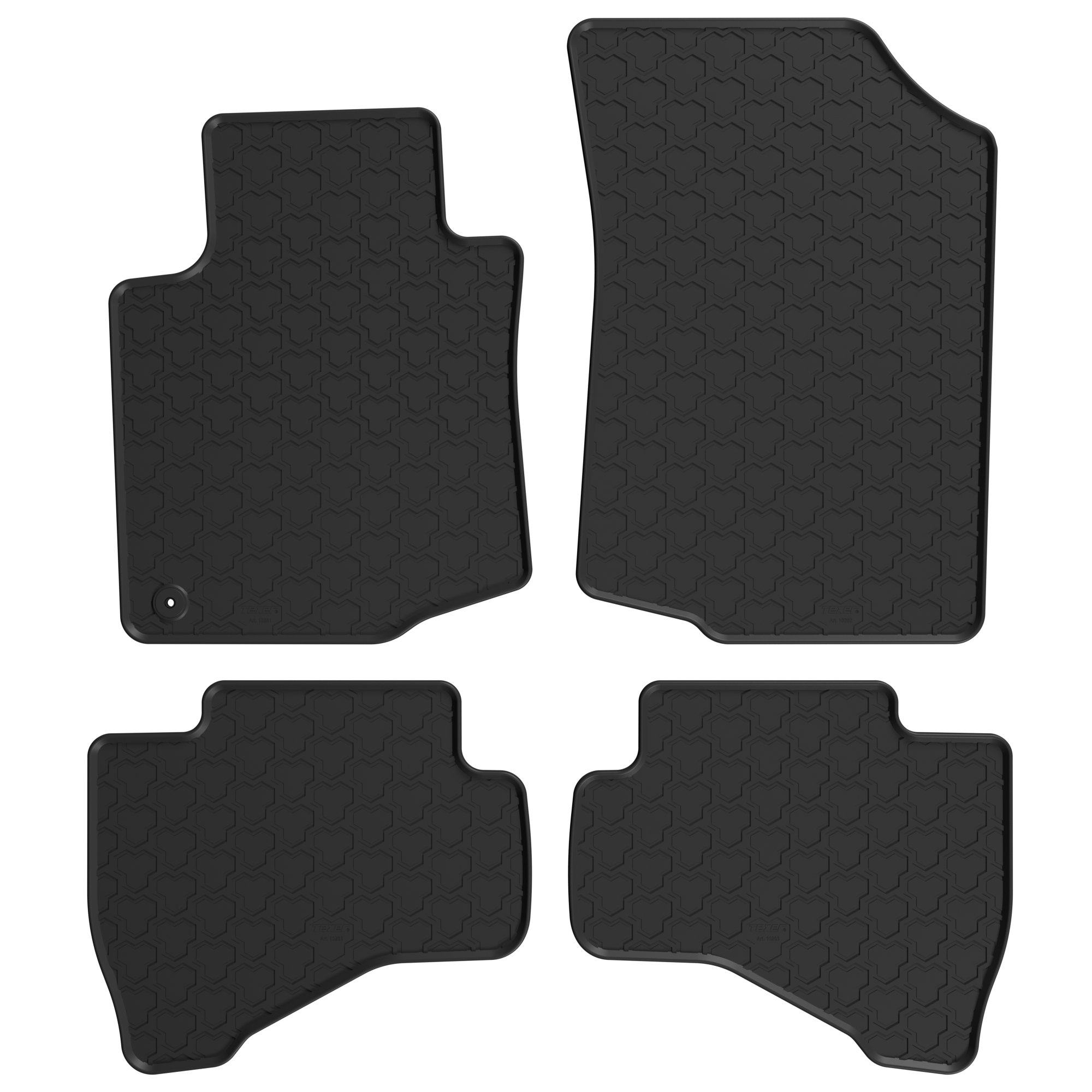 Dywaniki gumowe marki TEXER stanowią uniwersalną ochronę wykładziny nadwozia bez względu na porę roku oraz warunki pogodowe. Starannie opracowana mieszanka gumowa zapewnia optymalny poziom elastyczności oraz twardości produktu, zapobiegając tym samym powstawaniu pęknięć jak również ścieraniu się górnej warstwy podczas mechanicznego użytkowania. Wysoka odporność na działanie promieni UV chroni gumową wykładzinę przed blaknięciem. Na trwałość umożliwiającą długoletnie i satysfakcjonujące użytkowanie produktu nie pozostaje bez wpływu również oryginalna struktura tłoczeń umożliwiająca łatwe i szybkie czyszczenie a także zwiększona grubość gumy w miejscu pod stopami kierowcy.