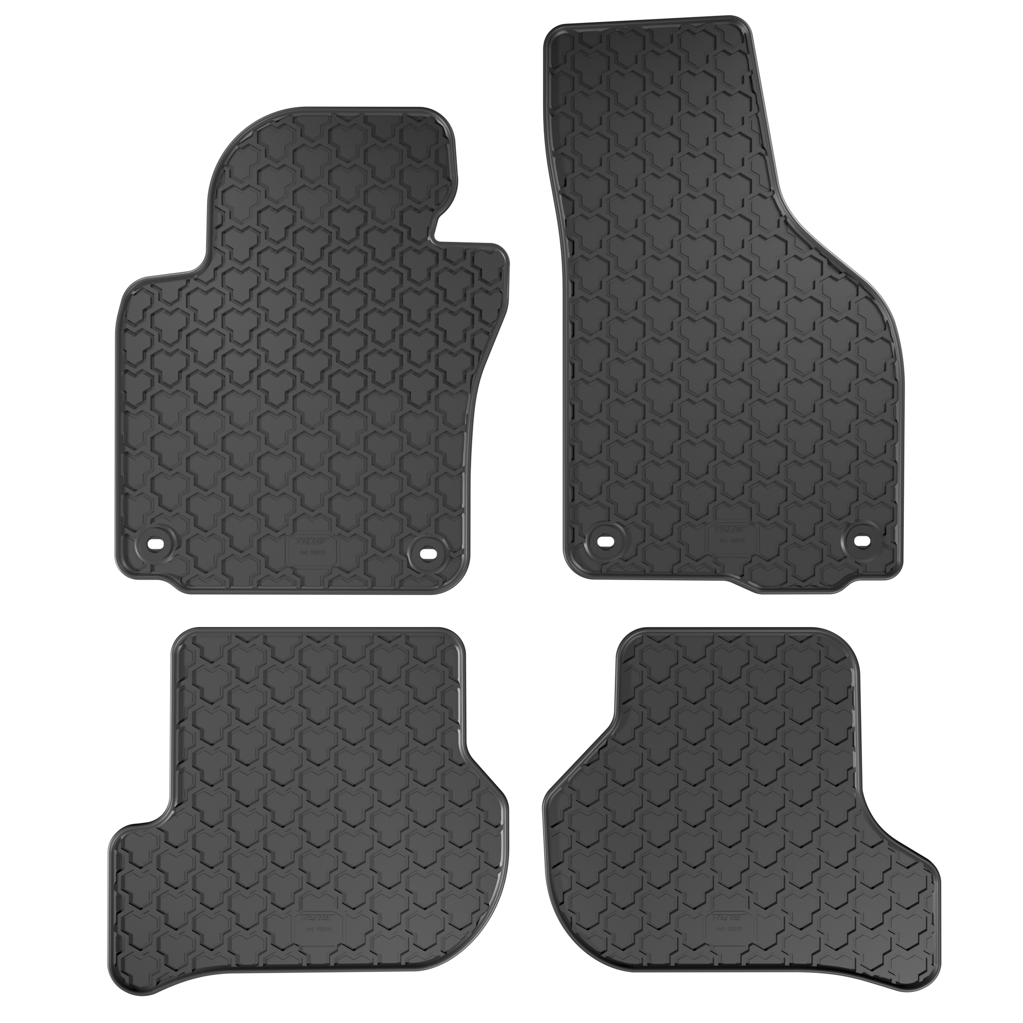 Dywaniki gumowe marki TEXER stanowią uniwersalną ochronę wykładziny nadwozia bez względu na porę roku oraz warunki pogodowe. Starannie opracowana mieszanka gumowa zapewnia optymalny poziom elastyczności oraz twardości produktu, zapobiegając tym samym powstawaniu pęknięć jak również ścieraniu się górnej warstwy podczas mechanicznego użytkowania. Wysoka odporność na działanie promieni UV chroni gumową wykładzinę przed blaknięciem. Na trwałość umożliwiającą długoletnie i satysfakcjonujące użytkowanie produktu nie pozostaje bez wpływu również oryginalna struktura tłoczeń umożliwiająca łatwe i szybkie czyszczenie a także zwiększona grubość gumy w miejscu pod stopami kierowcy.